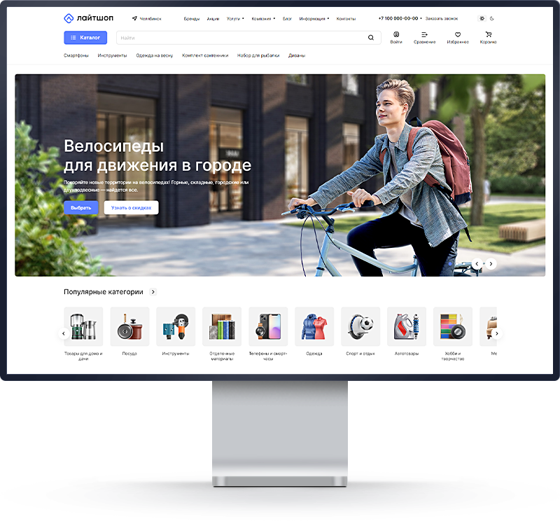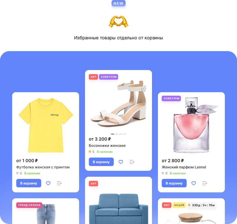 Легкие покупки в легком интернет-магазине! Решение предусматривает компактное отображение корзины для удобства использования. Чтобы не потерять подборку товаров, клиент может скачать корзину файлом или поделиться ей через ссылку.